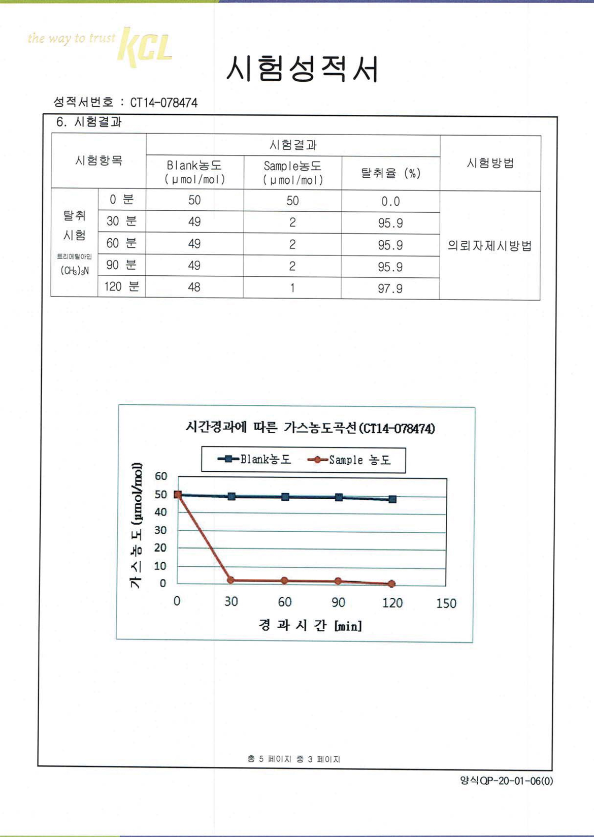 탈취력시험-트리메틸아민(KCL 2014.07)